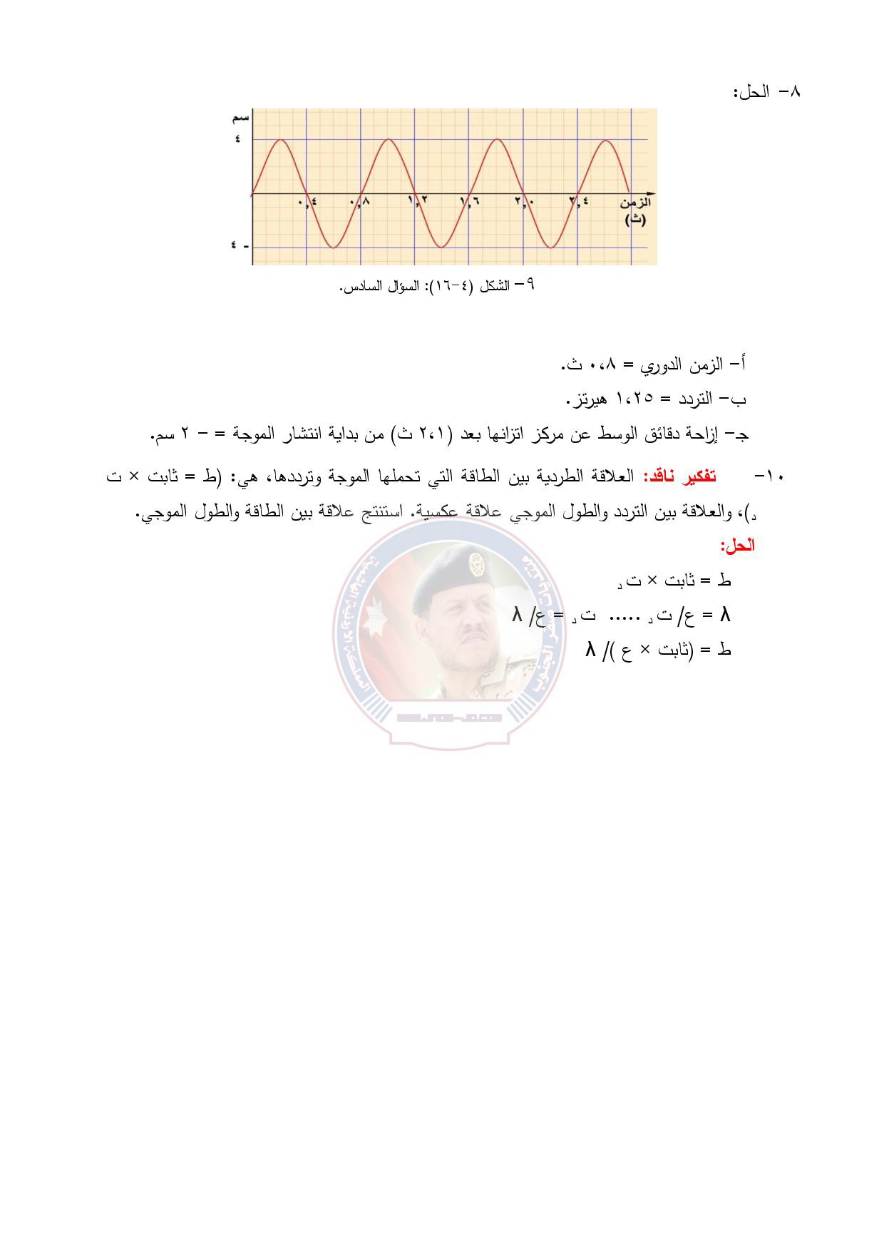 اجابات جميع دروس الفصل الرابع الطيف الكهرمغاطيسي الوحدة الثالثة التذبذبات والموجات لمادة الفزياء الصف العاشر الفصل الاول المنهاج الجديد 2016-2017