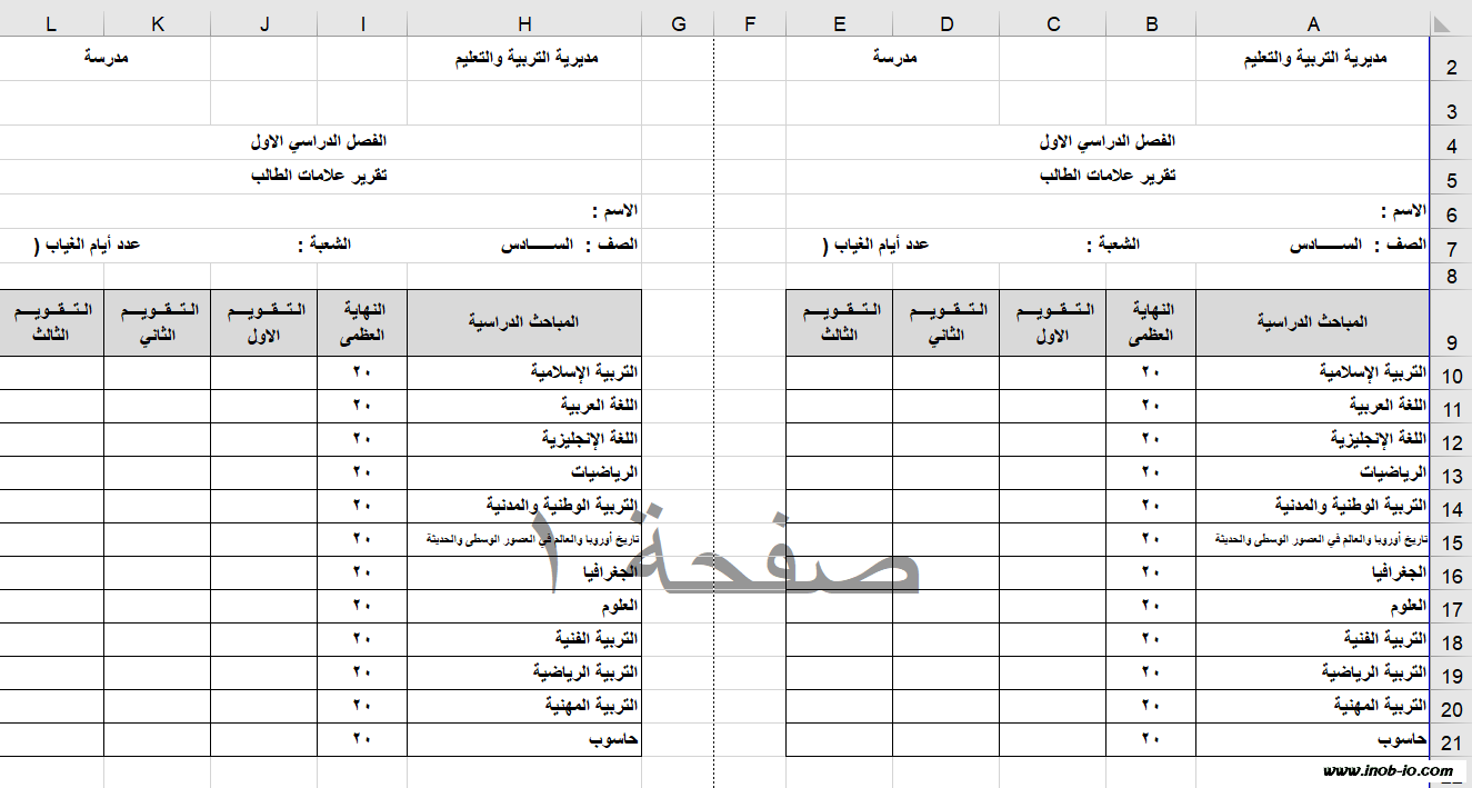 نموذج Excel قابل للتعديل شهادة شهرية للصف السادس جاهزة للطباعة قابلة للتعديل