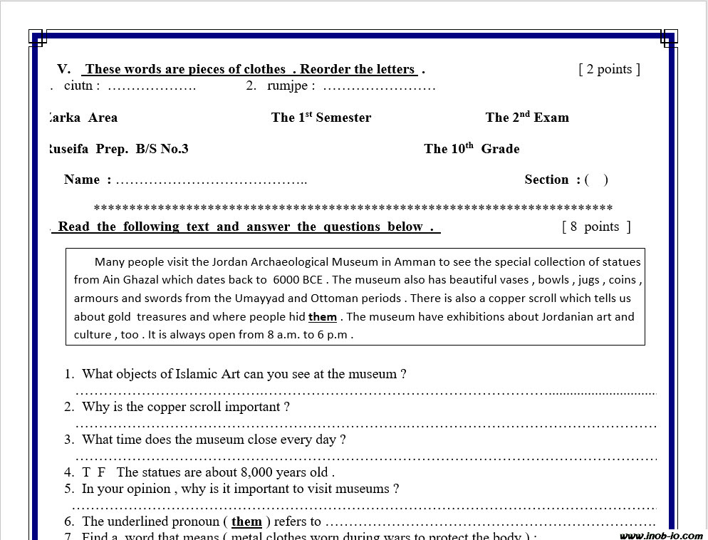 نموذج -3- Word قابل للتعديل الاختبار النهائي لمادة اللغة الانجليزية Action Pack الصف العاشر الفصل الاول