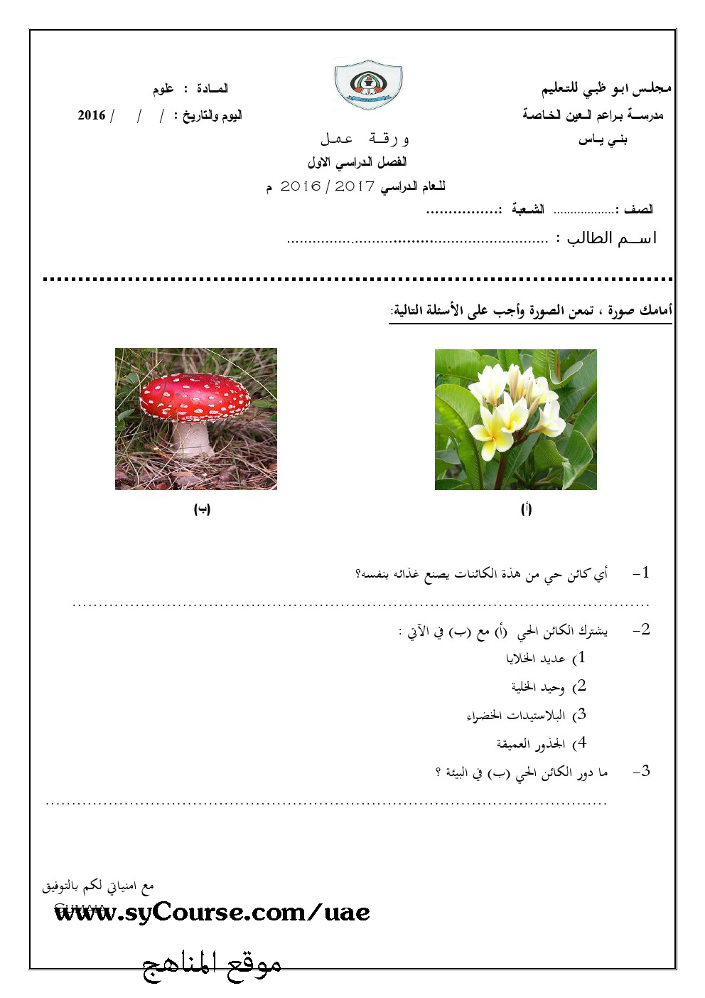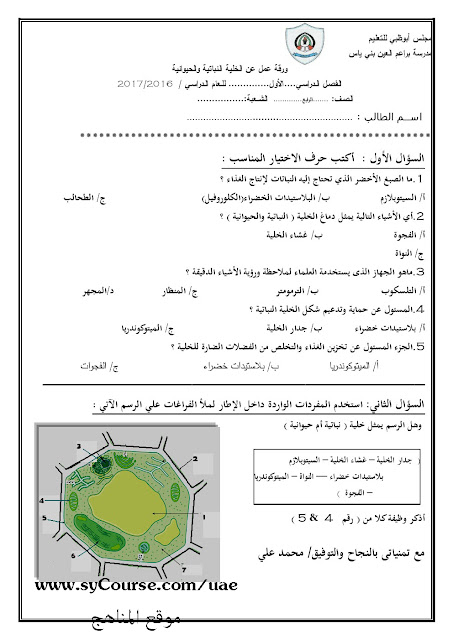 أوراق عمل حول الخلية النباتية والحيوانية لمادة العلوم الصف الرابع الفصل الاول المنهاج الامارتي لتحميل جميع الاوراق بملف واحد مجاني اضغط هنا وتابع