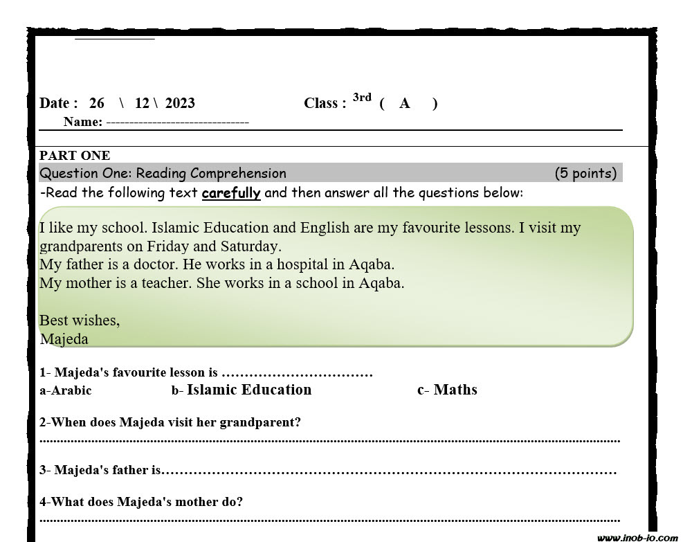 نموذج -4-word قابل للتعديل الاختبار النهائي لمادة اللغة الانجليزية Action Pack الصف الثالث الفصل الاول