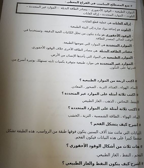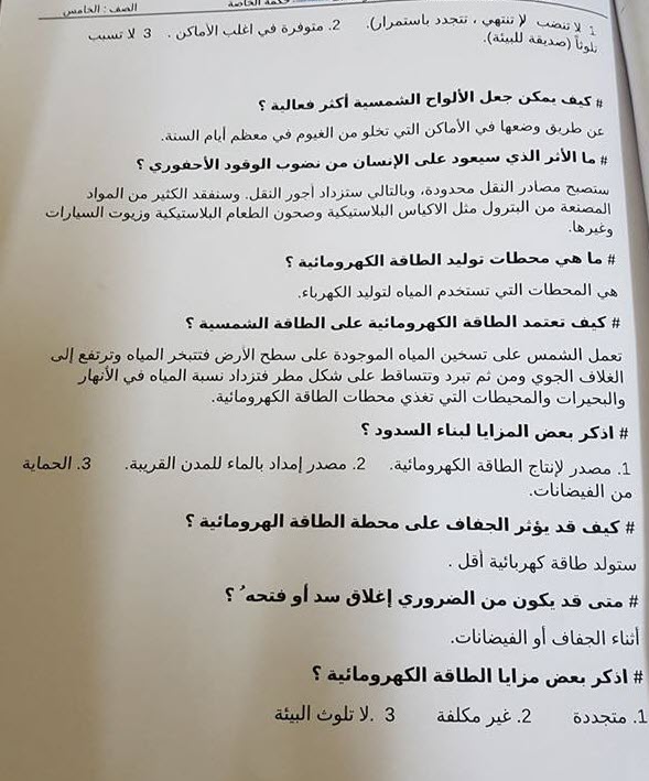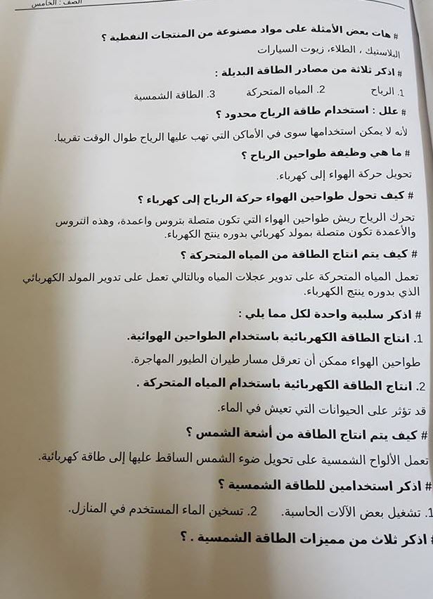 تلخيص درس استخدامات الموارد الطبيعية لمادة العلوم الصف الخامس الفصل الثاني