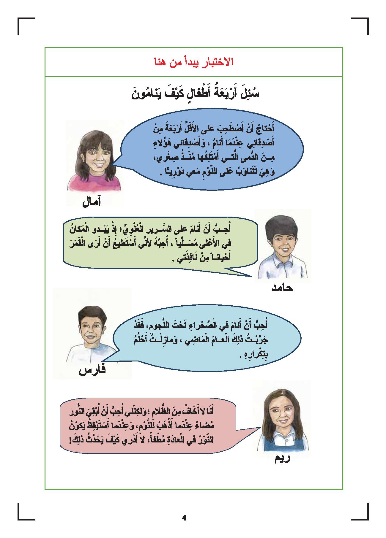 نموذج تدريبي لمادة اللغة العربية القراءة الصف الثالث الفصل الثاني