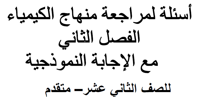 أسئلة لمراجعة منهاج الكمياء مع الاجابة النموذجية الفصل الثاني للصف الثاني عشر متقدم 2017