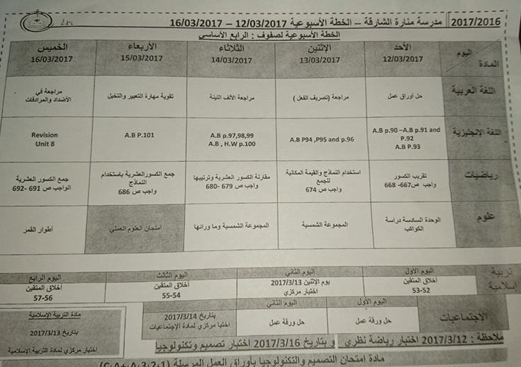 الخطة الأسبوعية للصف الرابع لمادة الدارسات الاجتماعية الفصل الاول