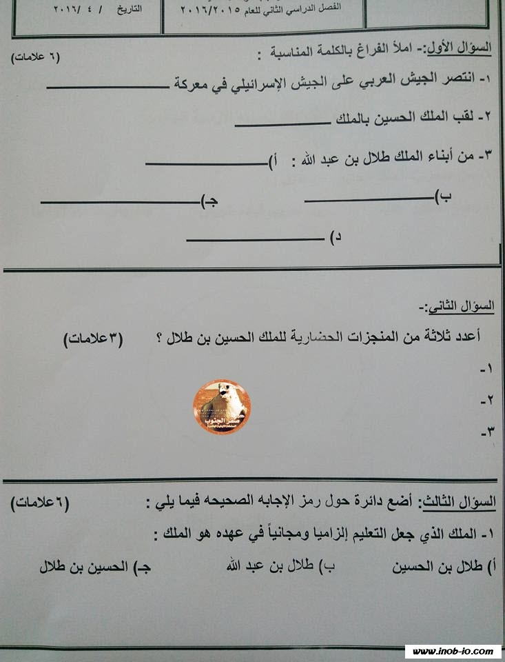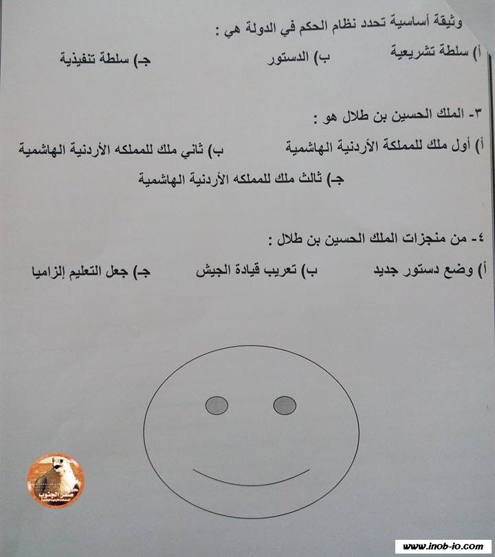 امتحان الشهر الثاني لمادة الاجتماعيات الصف الثالث الفصل الثاني نموذج 5