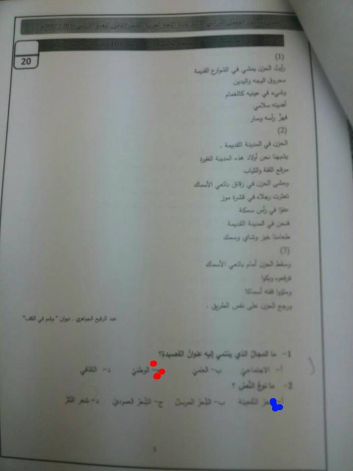 نموذج وزاري :. الامتحان + الاجابة النموذجية لامتحان اللغة العربية الصف الثامن منتصف الفصل الثالث