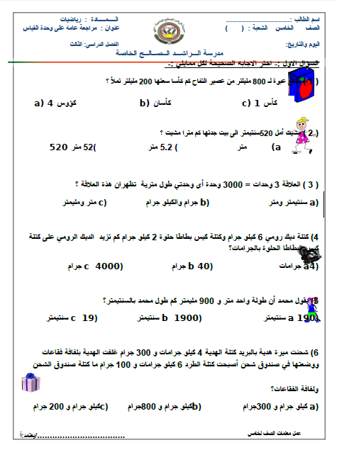 مراجعة شاملة لوحدات القباس الصف الخامس الفصل الثالث التحميل ملف PDF لكم اضغط هنا وتابع