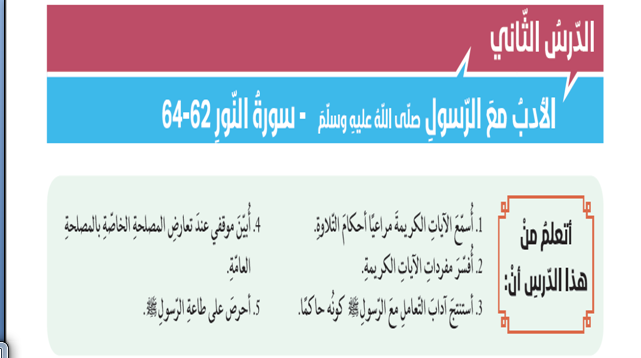 عرض محوسب(مع الاجابات ( الأدب مع الرسول عليه الصلاة والسلام) لمادة التربية الإسلامية الصف الثاني عشر الفصل الثالث 2019