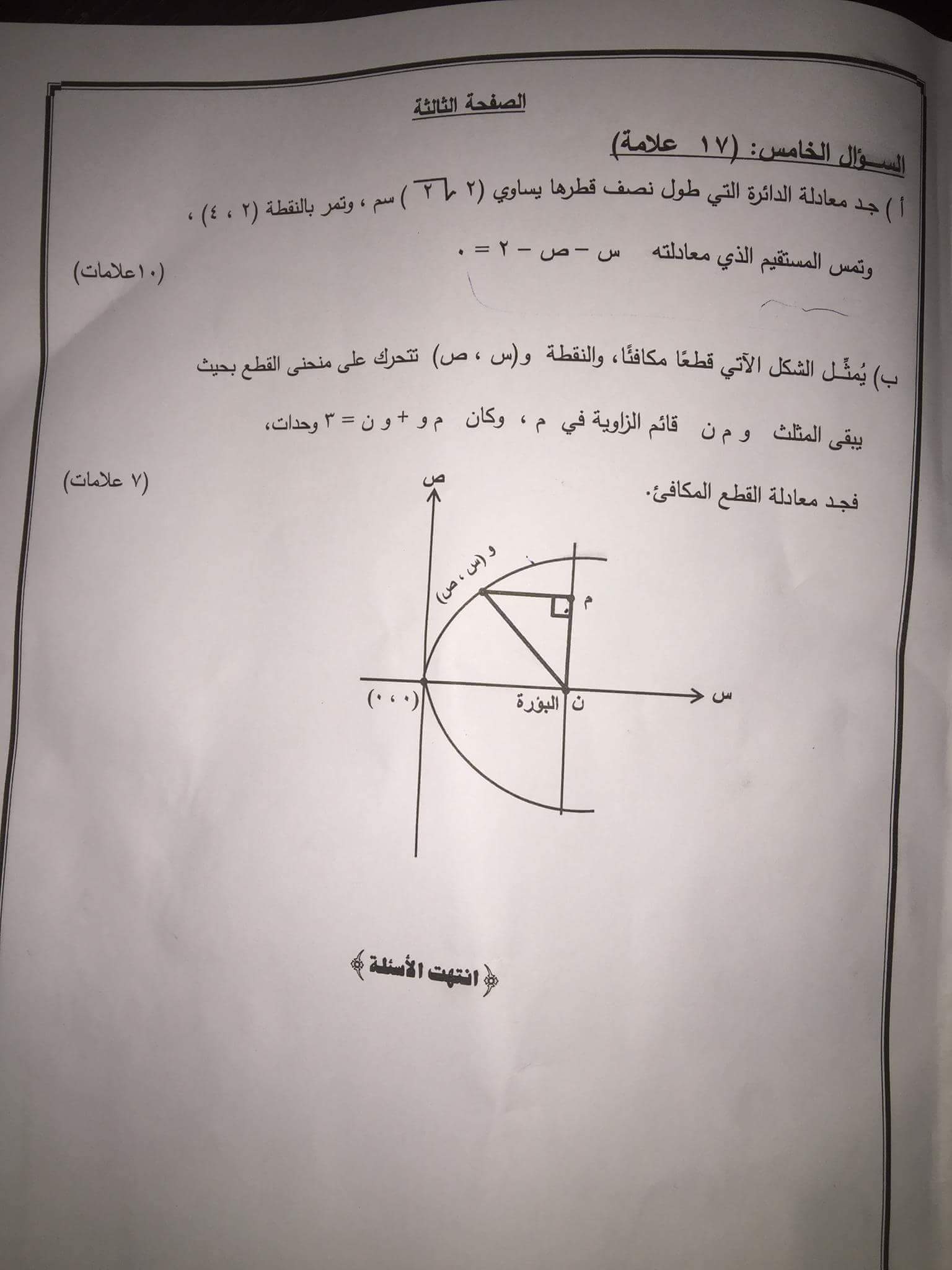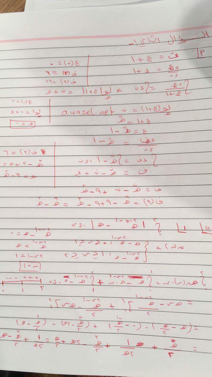 أسئلة الامتحان الوزاري الثانوية العامة الدورة الصيفية لمادة الرياضيات الفرع العلمي م4 مع الاجابات بتاريخ اليوم 04-07-2017