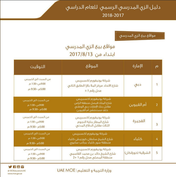 عاجل جميع أماكن بيع الزي المدرسي للعام الدراسي 2017-2018