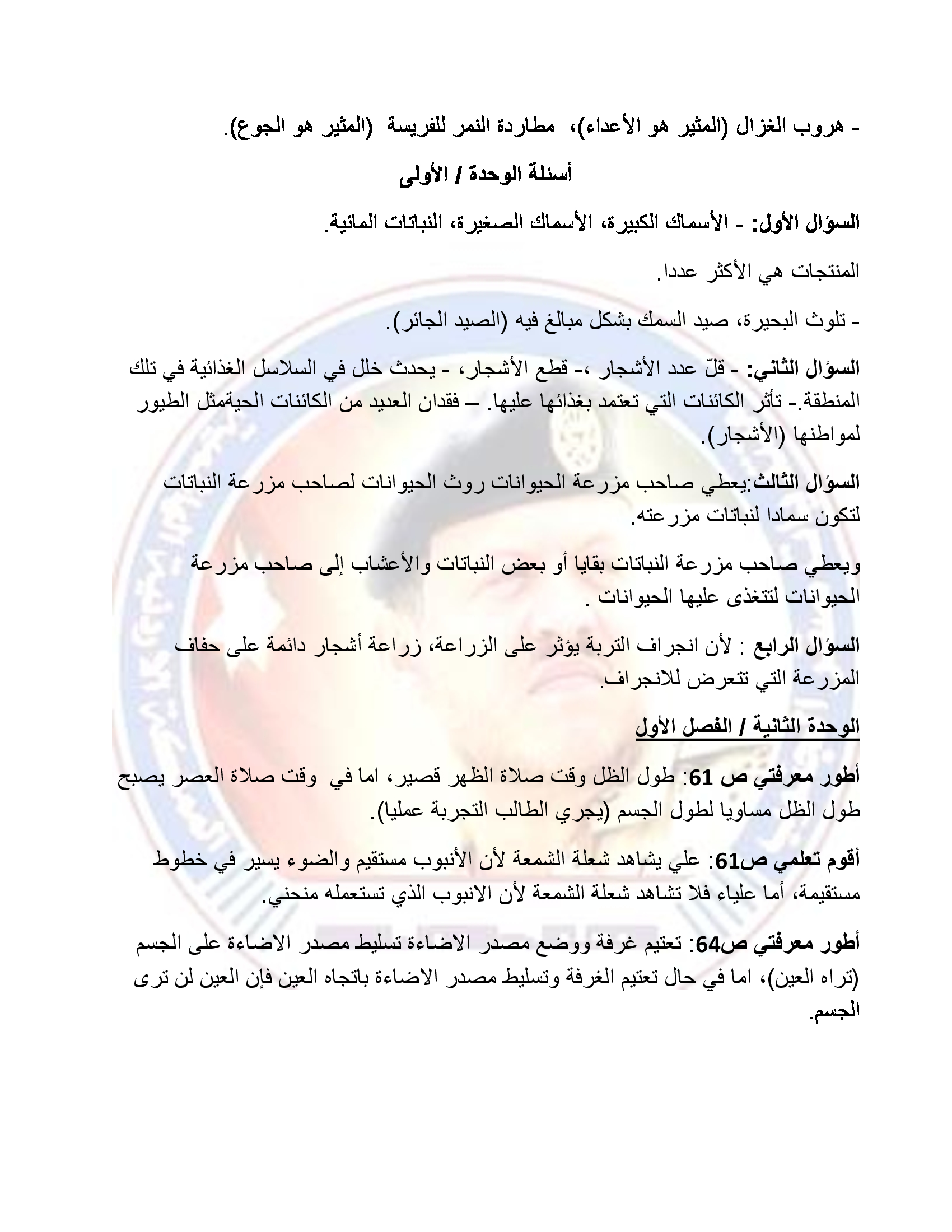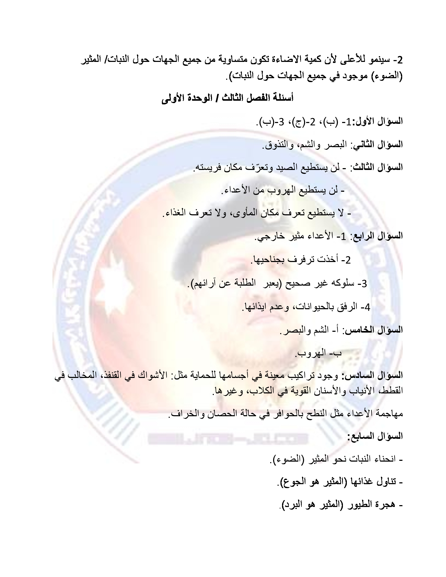 بالصور كامل :. اجابات مادة العلوم الصف الرابع الفصل الاول الفصل الاول