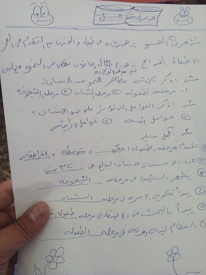 بالصور ننقل لكم:ورقة عمل وحدة النمو لمادة العلوم للصف الخامس الفصل الأول
