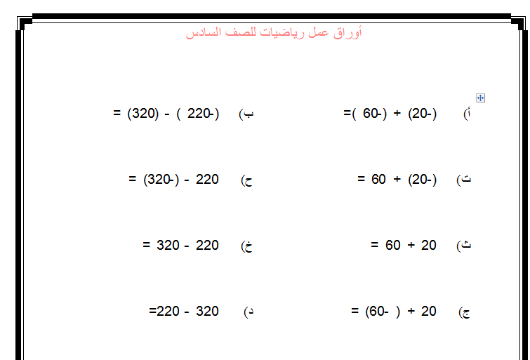 نموذج Word قابل للتعديل ننقل لكم أوراق عمل لمادة الرياضيات للصف السادس الفصل الاول