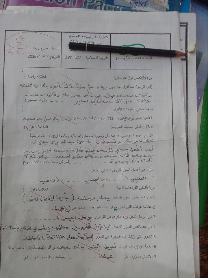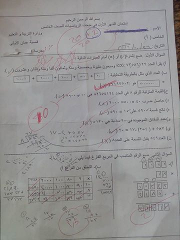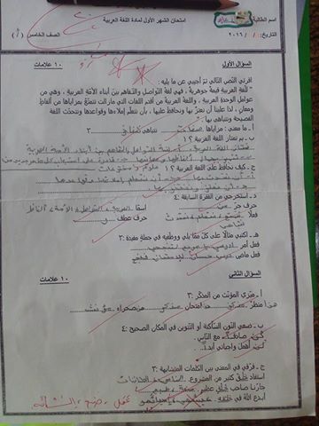 ننقل لكم بالصور :نماذج جديدة امتحانات الشهر الأول "رياضيات وعربي ودين واجتماعيات" للصف الخامس
