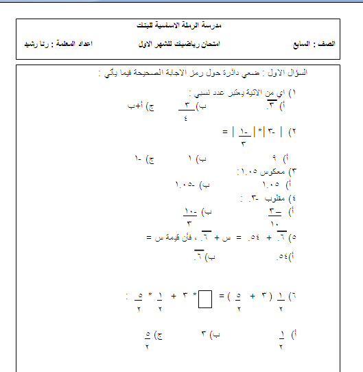 ه همسآت شرقية طاقم الادارة إنضم 1 فبراير 2013 المشاركات 17,282 مستوى التفاعل 362 النقاط 63 الإقامة المفرق 15 أكتوبر 2017 #1 لتحميل الملف اضغط هنا وتابع أو من المرفقات المرفقات filename-0=امتحان رياضيات سابع (3).rar 14.1 KB · المشاهدات: 50