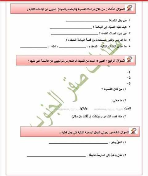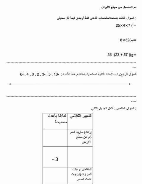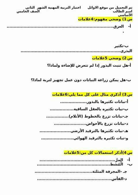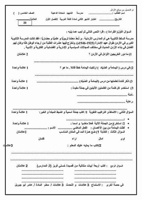 بالصور: نماذج امتحانات الشهر الثاني لجميع مواد الصف الخامس الفصل الأول