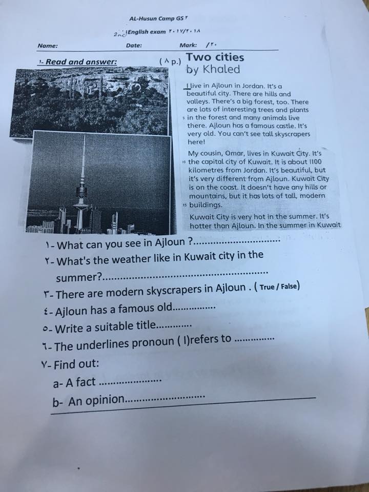 نموذج جديد مصور :. اختبار الشهر الثاني لمبحث اللغة الإنجليزية Action Pack للصف السادس الفصل الأول