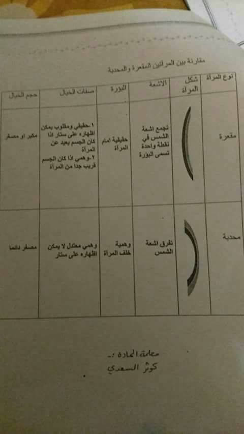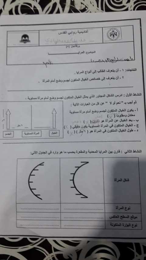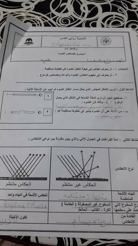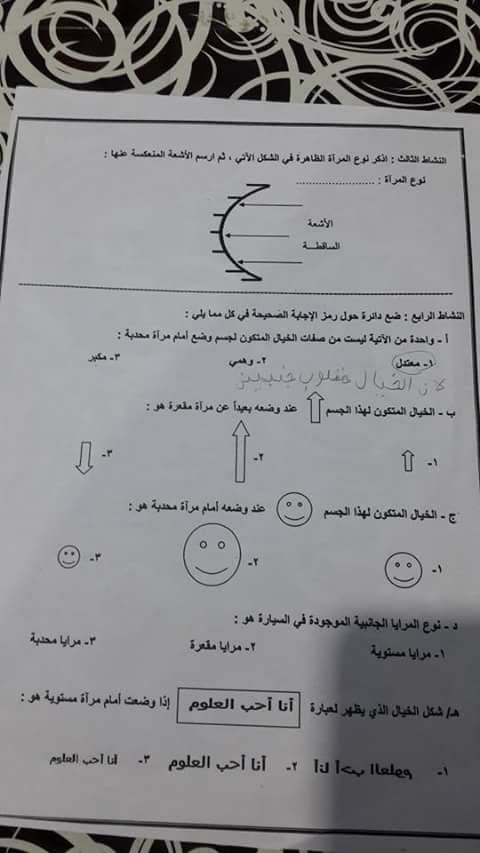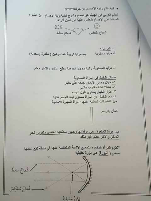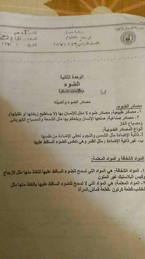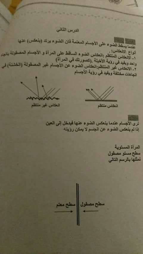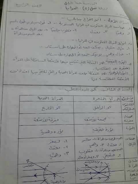 بالصور امتحان وتلخيص وحدة الضوء-المرايا لمادة العلوم للصف الرابع الفصل الأول