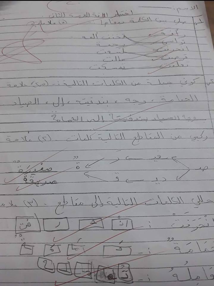 صور :. نموذج جديد :لامتحان الشهر الثاني لمادة اللغة العربية للصف الثاني الفصل الأول