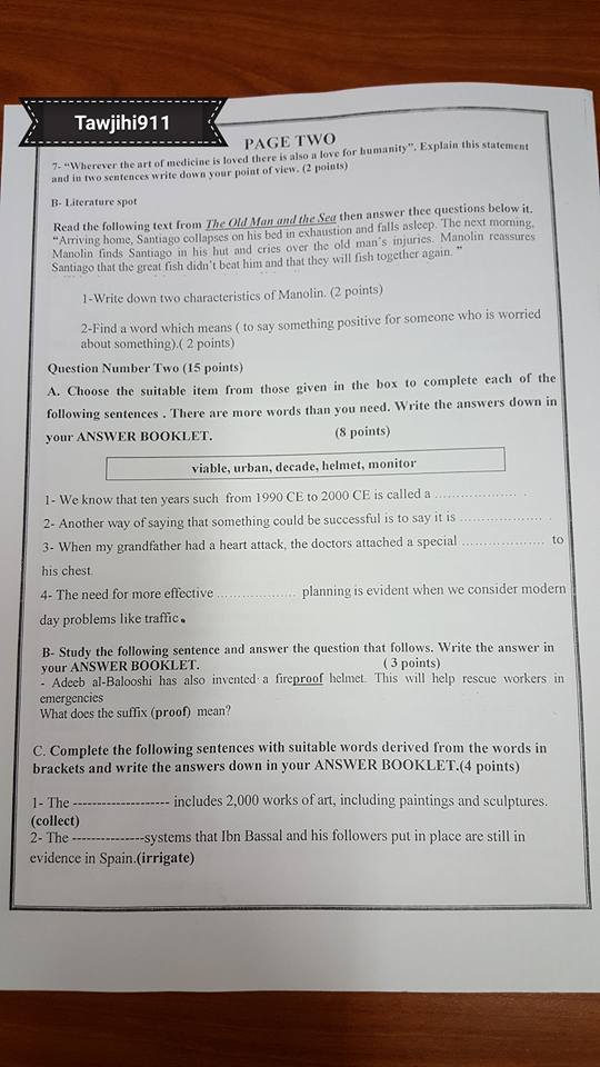 مع الإجابة : الامتحان التجريبي لمادة اللغة الإنجليزية م 3 "توجيهي مشترك " للدورة الشتوية 2018