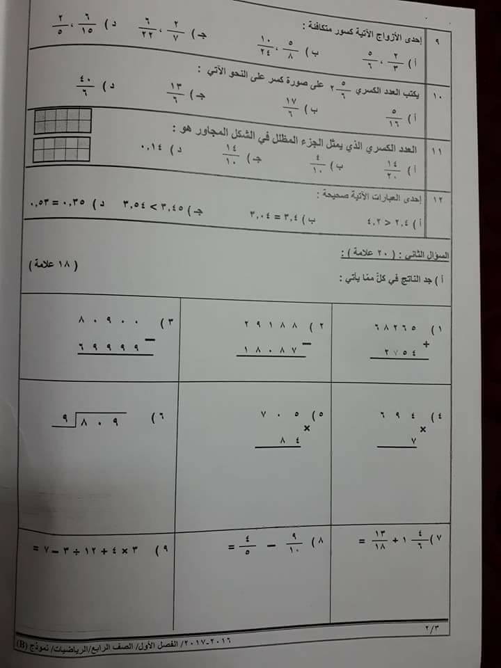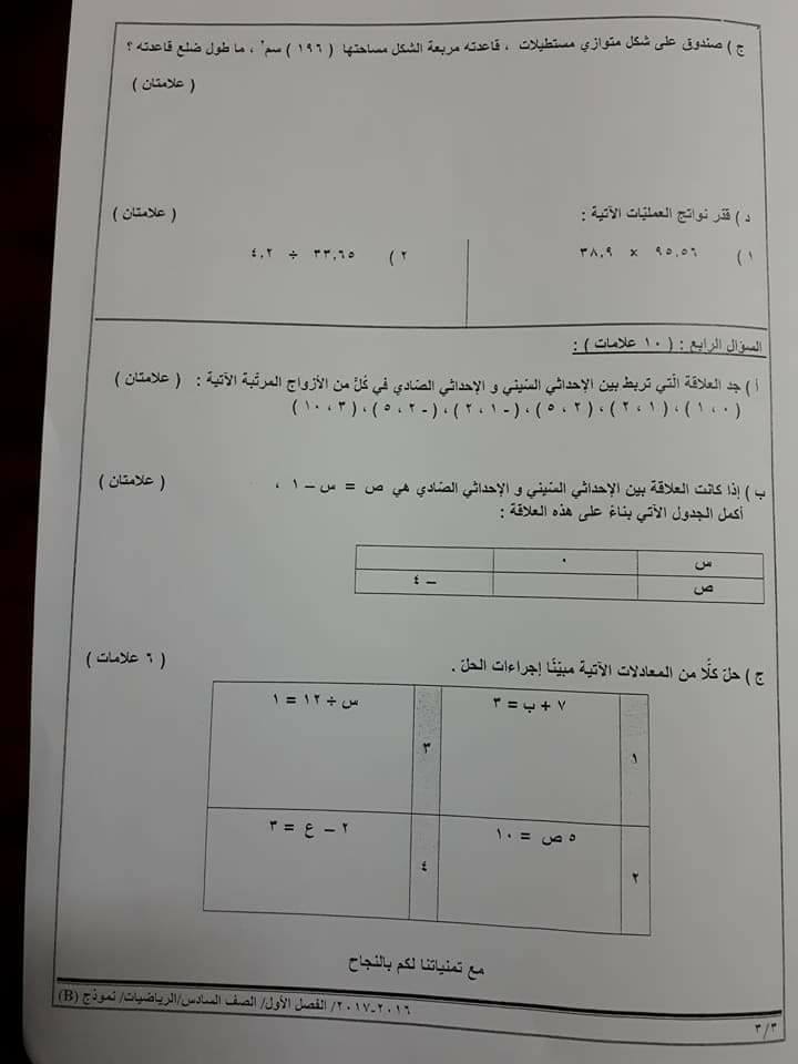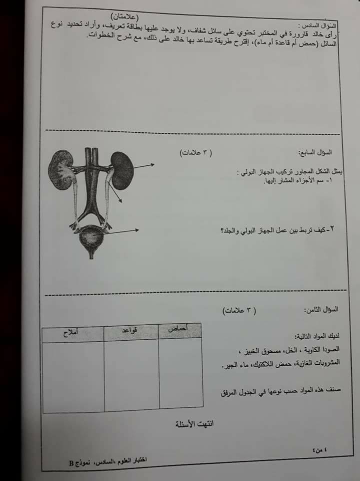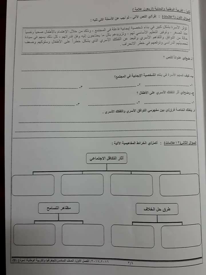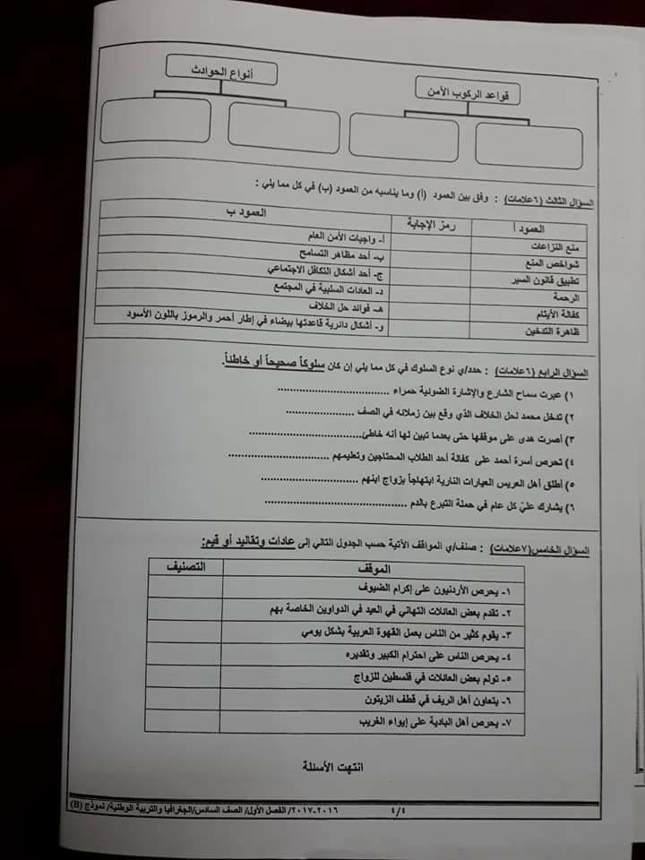 نماذج وكالة :الاختبارات النهائية للصف السادس الفصل الأول