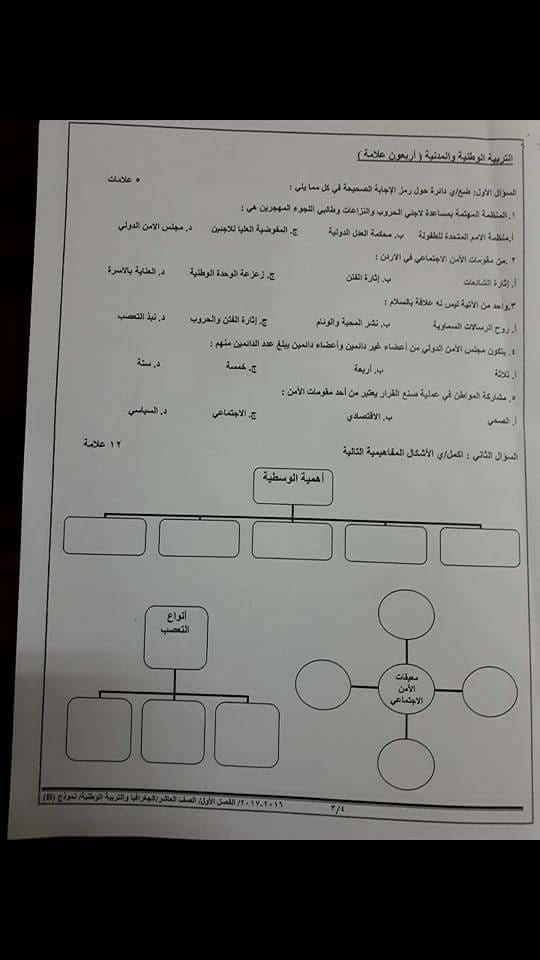 صور :. نموذج وكالة : اختبار نهائي "جغرافيا وتربية وطنية" للصف العاشر الفصل الأول