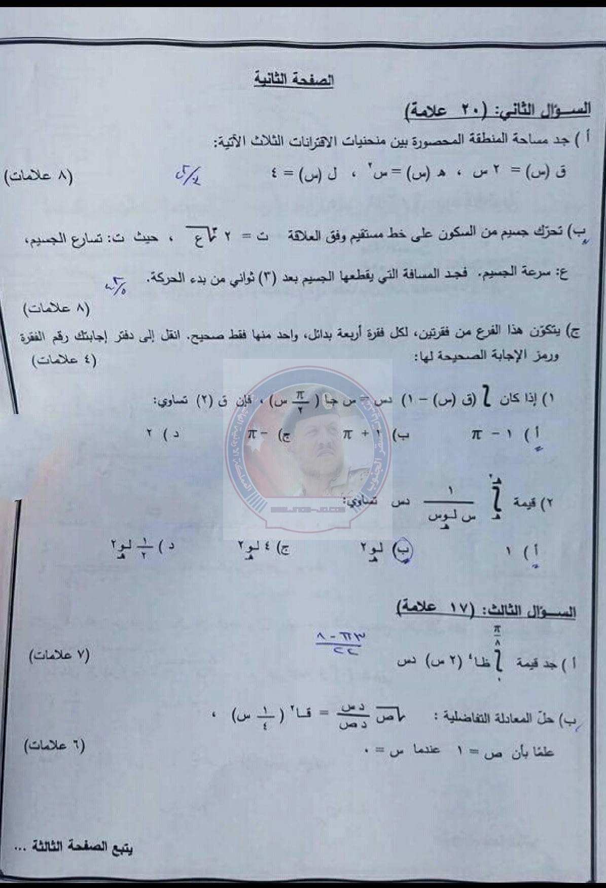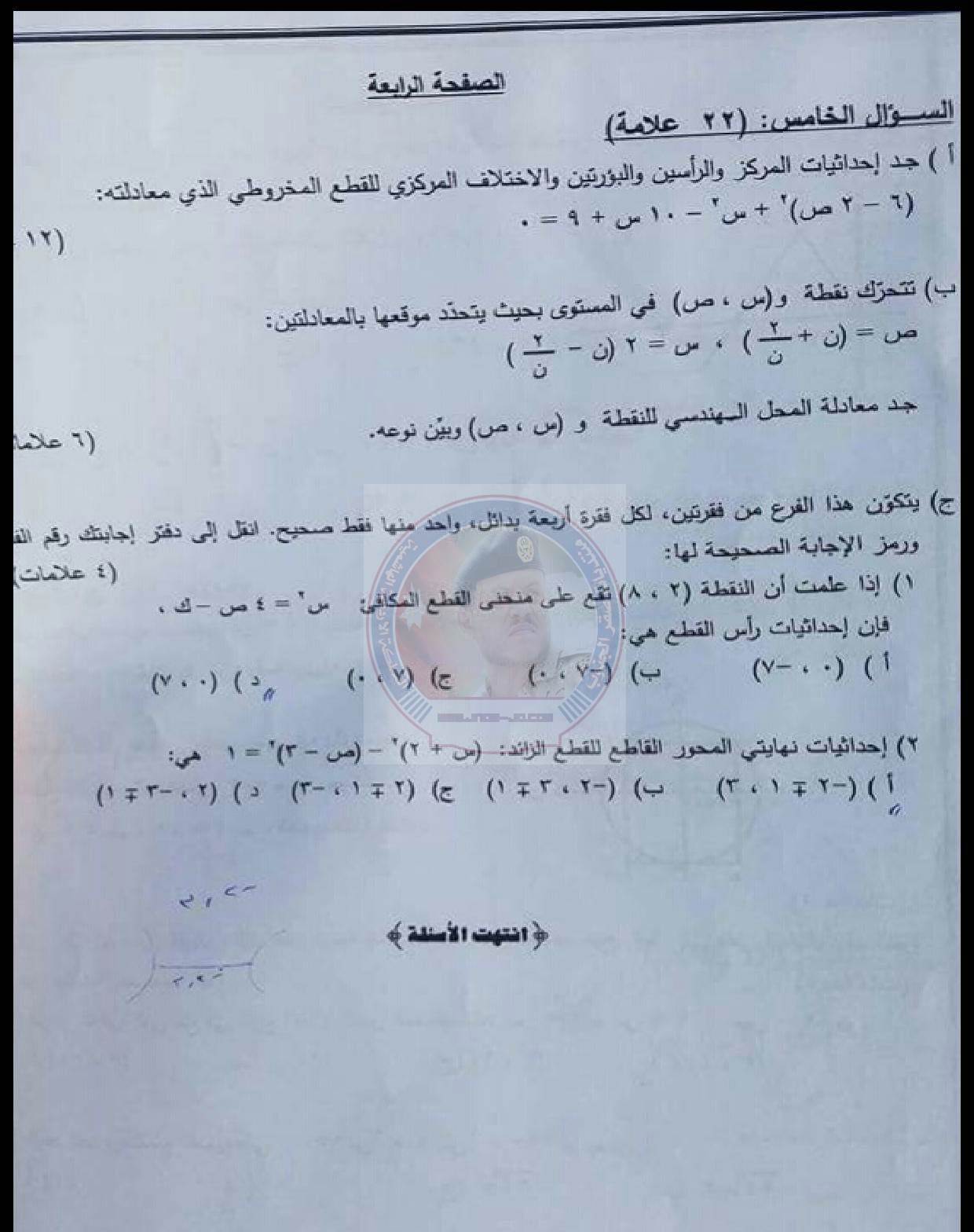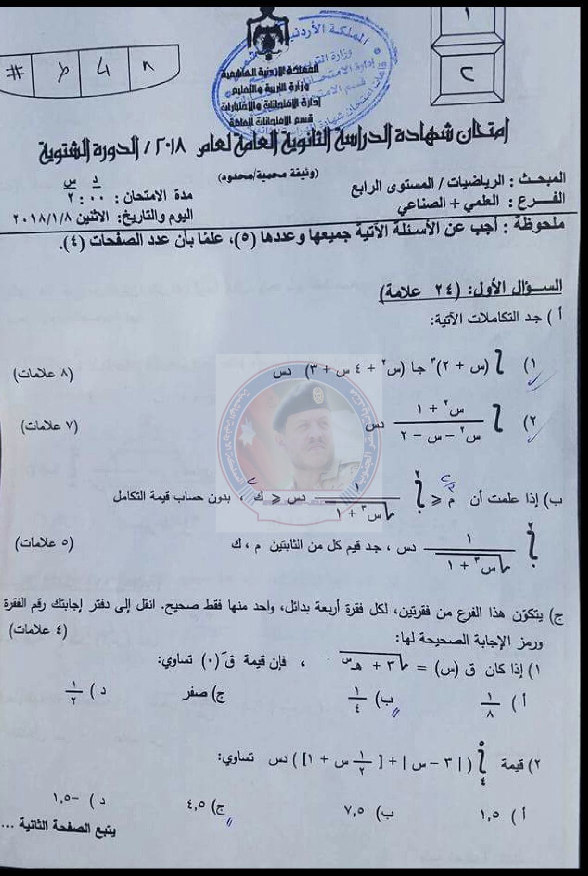 بالصور + ملف PDF امتحان مادة الرياضيات الثانوية العامة م4 للفرع العلمي مع الإجابات الدورة الشتوية 2018