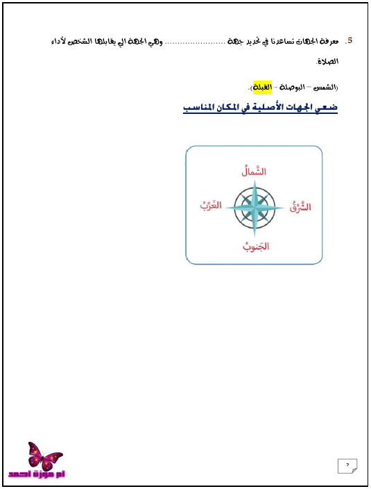 بالصور أوراق عمل الوحدة 3 الجهات وطرائق استخدامها للصف الثالث الفصل الثاني