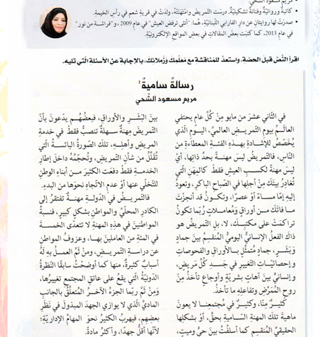حلول درس رسالة سامية لمادة اللغة العربية الصف التاسع الفصل الثاني