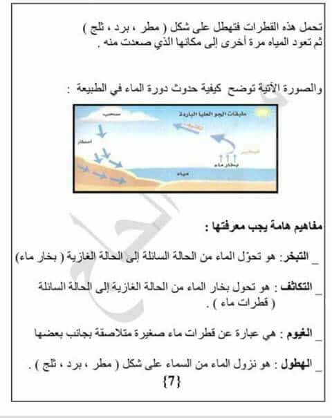 تلخيص شامل لوحدة الماء لمادة العلوم الصف الثالث الفصل الثاني