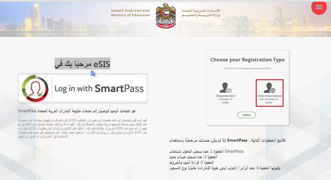 طريقة النسجيل في مدارس eSIS الامارات العربية المتحدة