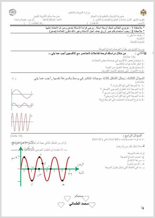 نموذج اختبار الشهر الثاني لمادة العلوم للصف الثامن الفصل الثاني