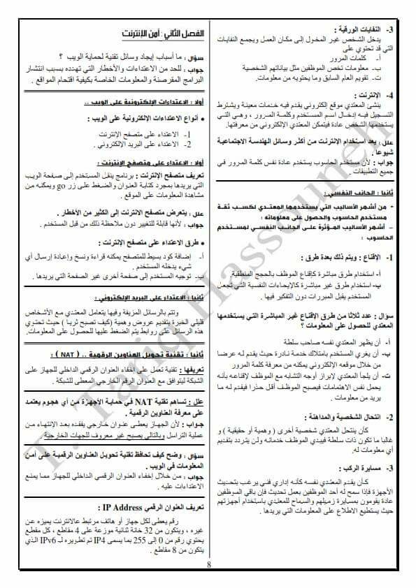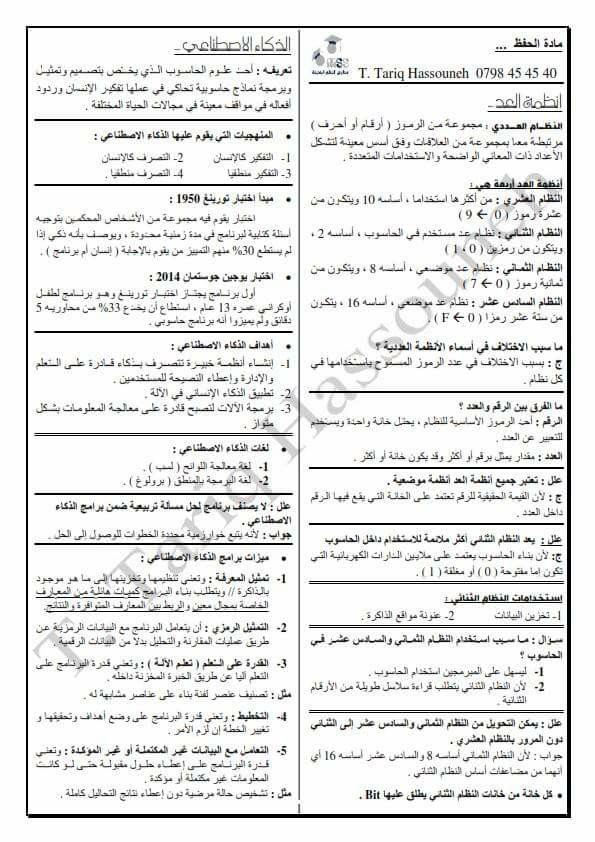 التوجيهي:مادة الحفظ لمادة الحاسوب الفصل الثاني