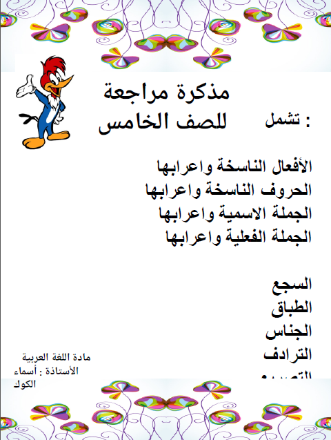 مذكرة مراجعة (نحو) للصف الخامس الفصل الثالث