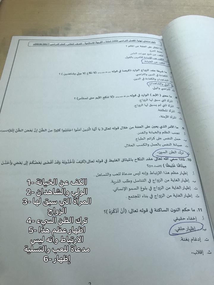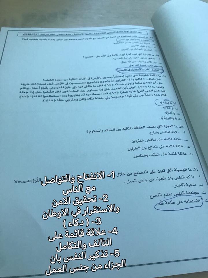 بالصور اختبار مادة التربية الاسلامية عام ومتقدم ونخبة الصف العاشر مع الاجابات نهاية الفصل الثاني نموذج 2018