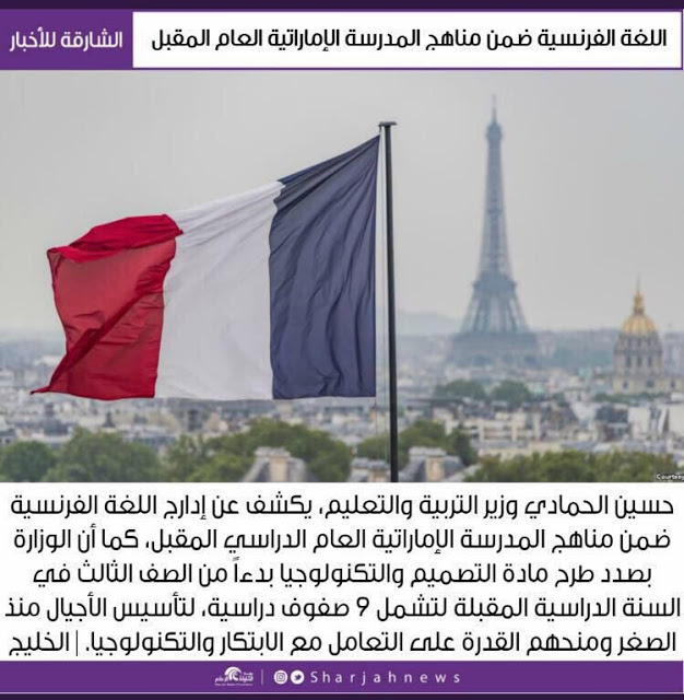 اللغة الفرنسية ضمن مناهج المدرسة الإماراتية العام المقبل 2019