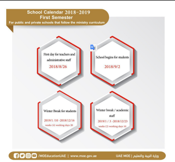 School Calendar 2018-2019 For public and private schools that follow the ministry curriculum "First Semester"