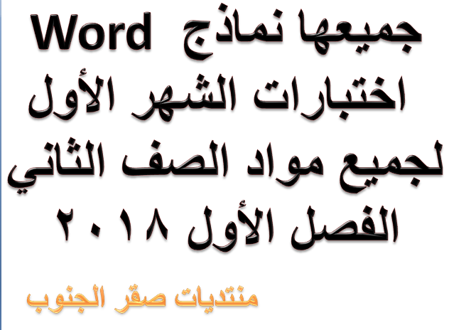 جميعها نماذج Word احتبارات الشهر الاول لجميع مواد الصف الثاني الفصل الاول 2018