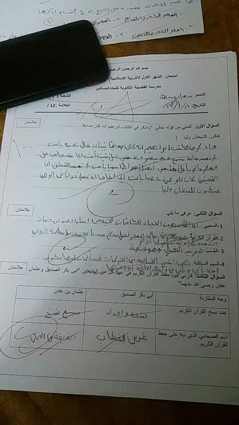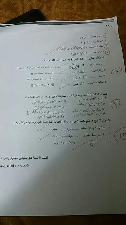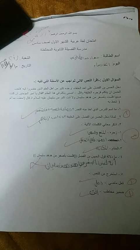 سنوات سابقة :. بالصور نماذج امتحان الشهر الأول"عربي-دين-رياضيات-تاريخ"للصف السادس الفصل الأول