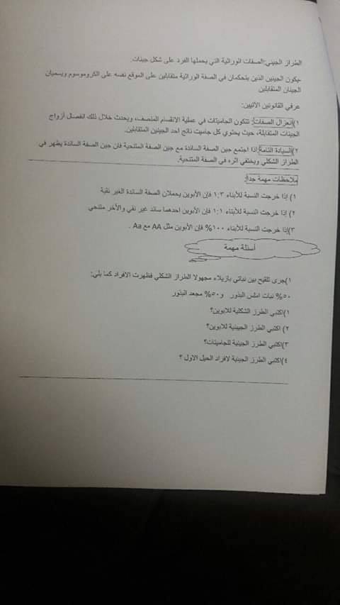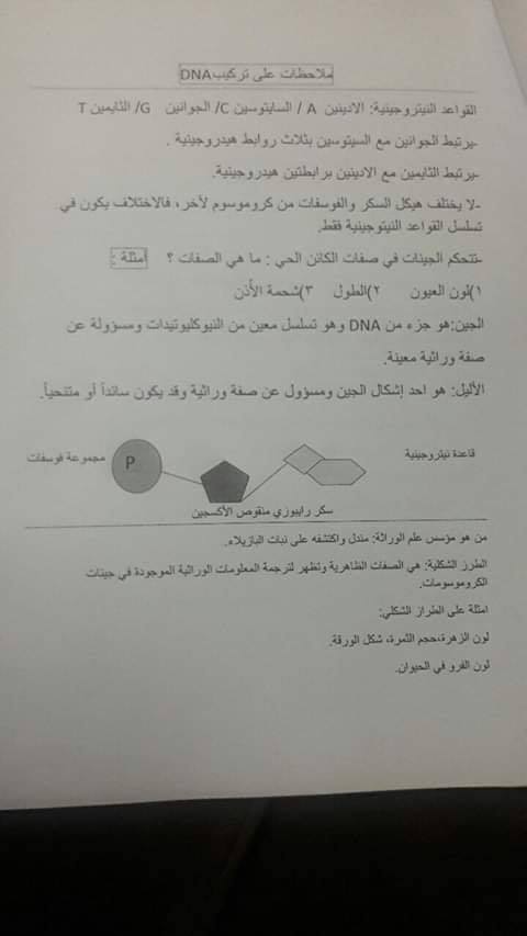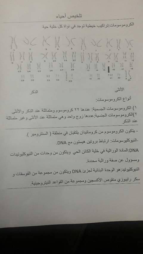 تلخيص احياء درس الكروسومات وتركيب DNA والوراثه المندليه للصف العاشر الفصل الأول