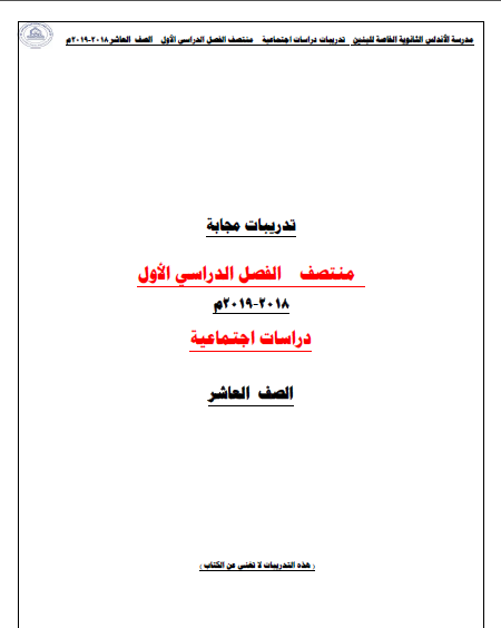 تدريبات مجابه لمادة الدراسات الأجتماعيه الصف العاشر الفصل الأول المنهاج القطري 2018 - 2019