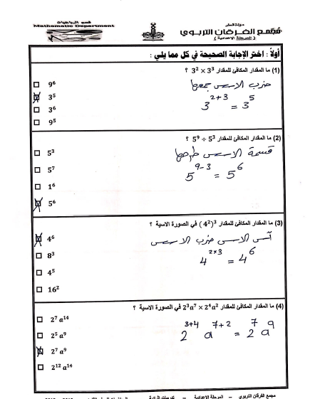مراجعه مفيده مع الحلول لمادة الرياضيات الصف الثامن الفصل الأول المنهاج القطري 2018 - 2019