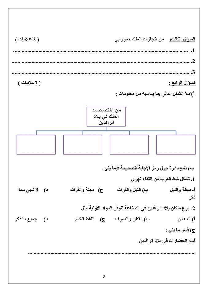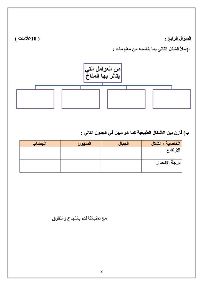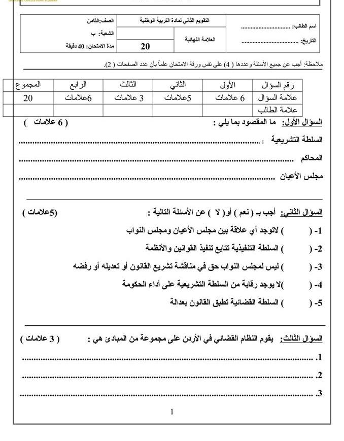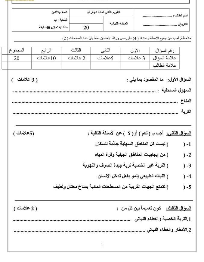 بالصور :. نماذج لاختبار الشهر الثاني لمادة (التربية الاجتماعية)للصف الثامن الفصل الأول