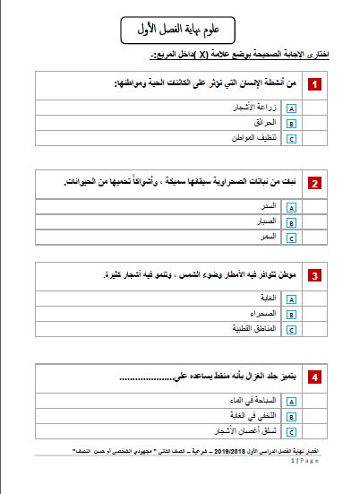 أختبار نهاية الفصل لمادة العلوم الصف الثاني الأبتدائي الفصل الأول لتحميل الملف PDF اضغط هنا وتابع