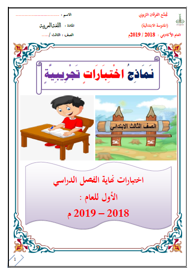 نماذج اختبارات تجريبيه نهاية الفصل لمادة اللغة العربية الصف الثالث الفصل الأول