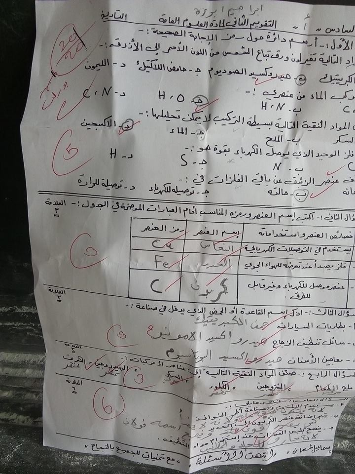 نماذج لاختبار الشهر الثاني لمادة (العلوم)للصف السادس الفصل الأول