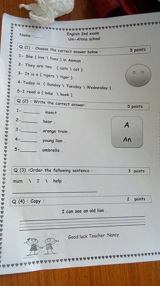 صور :. نموذج لاختبار الشهر الثاني لمادة (اللغة الإنجليزية)للصف الثاني الفصل الأول