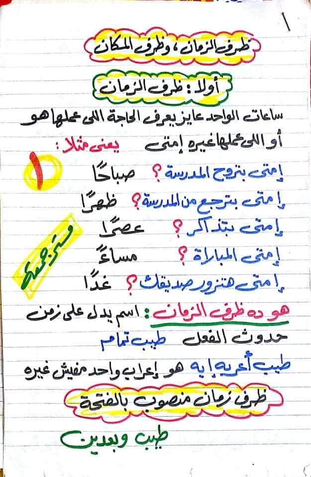بطاقات شرح الظرف ومراجعة نحوية