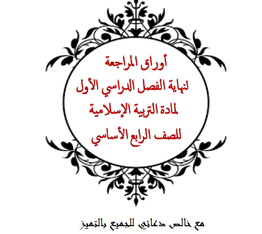 أوراق عمل مراجعه لنهاية الفصل الدراسي الاول لماده التربية الاسلامية للصف الرابع لتحميل الملف PDF اضغط هنا وتابع